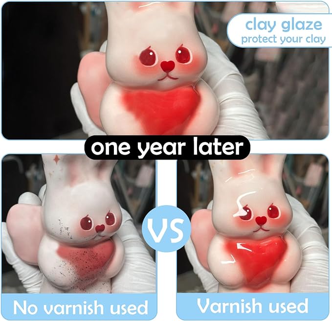 - Air Dry Clay Glaze: Clay varnish prevents air drying clay from drying out cracks, scratches, scuffs and abrasions on the clay, glaze for air dry clay is also watertight and fireproof, and dries to transparent, high gloss finish