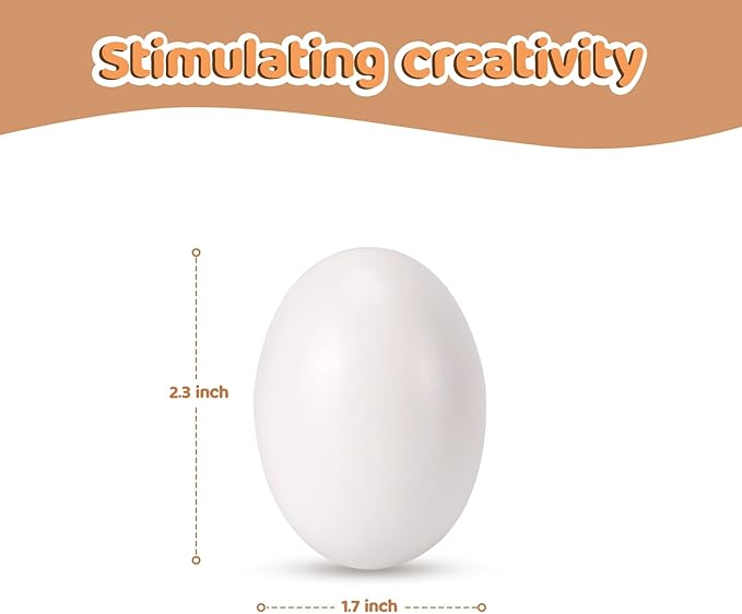 - These white fake eggs measure 1.7 x 2.3 inches, closely resembling real eggs. Beyond arts and crafts, they are also great for photography props, home decor, and farmhouse-style displays. Whether used as holiday decorations, painting crafts, or fake eggs to dye, they seamlessly fit into any DIY project.