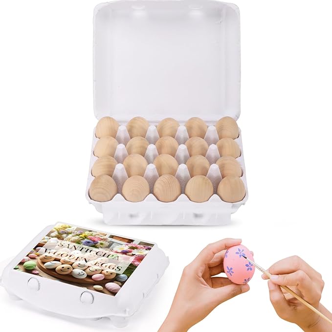- This 20-count set of wooden eggs for crafts features a smooth, unpainted surface, making them perfect for hand-painting, dyeing, and decorating. Whether using acrylic paint, watercolors, markers, or wood stains, they absorb colors beautifully, making them an excellent choice for Easter egg painting, art classes, and holiday decorations.