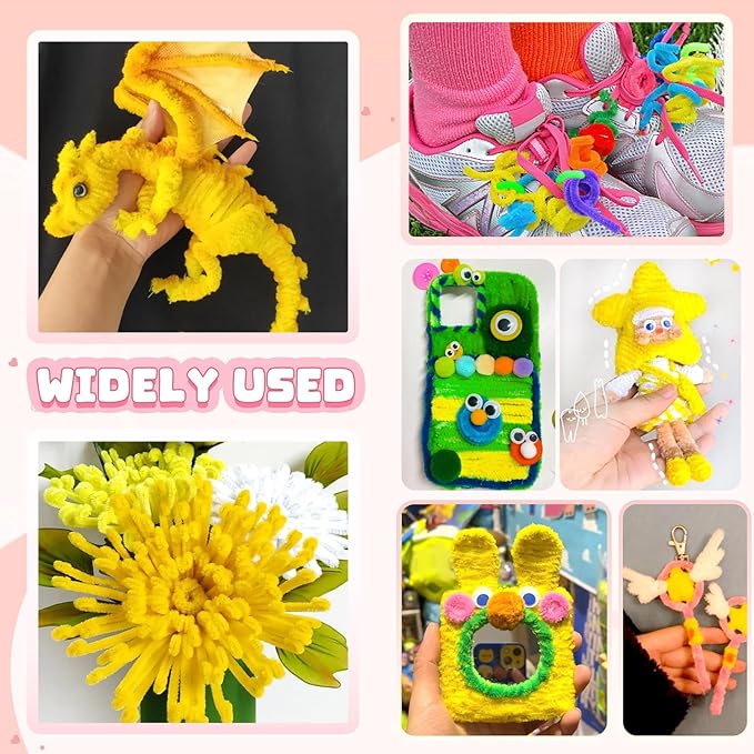 - Have Fun: Chenille Stems are perfect for DIY projects, opening your unlimited imagination and giving life to your craft projects. The making process can exercise your DIY ability. You can use these pipe cleaners as decorations for Halloween and Christmas