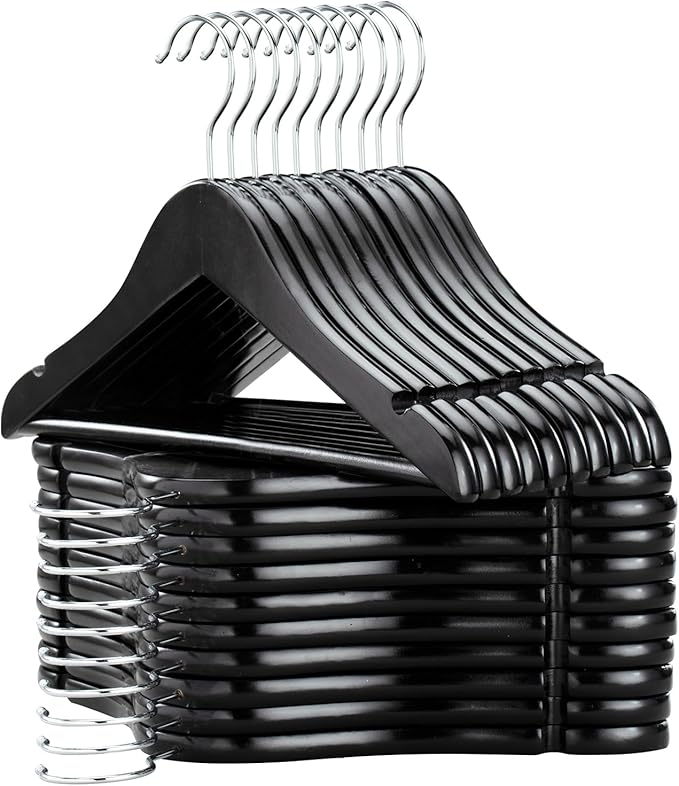 FairyHaus Kids Wooden Hangers 20Pack Black, 12.8 Inch Baby Wooden Hangers for Closet, Anti-Rust 360° Swivel Hook, Notches & Smooth Finish, Natural Solid Wood Childrens Hangers for Clothes
