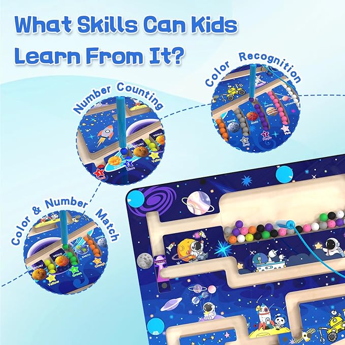 - 【Montessori-Inspired Learning】 The magnetic maze board is a fun way for children to learn while playing, practicing counting, color recognition, hand-eye coordination, and fine motor skills. Keeps kids engaged for hours.The precision required to move the tiles through the maze helps develop dexterity and control, setting the foundation for more advanced motor skills later in life.
