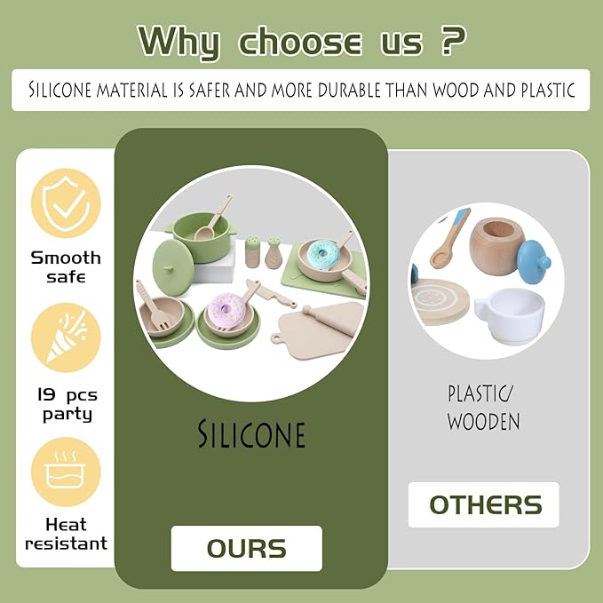 - đœăPremium Quality MaterialăMade from non-toxic silicone material, this kitchen set is durable and easy to clean. No harm to hands, safe design and suitable for children's small hands.