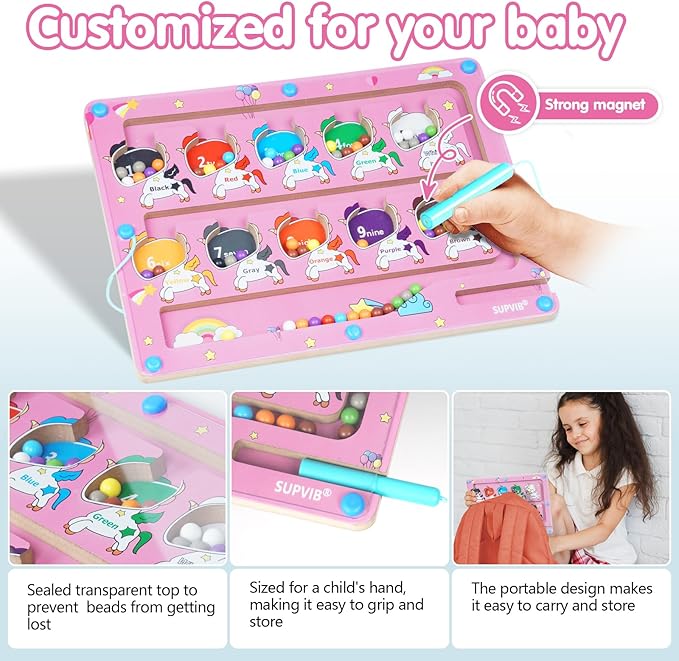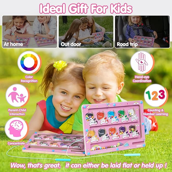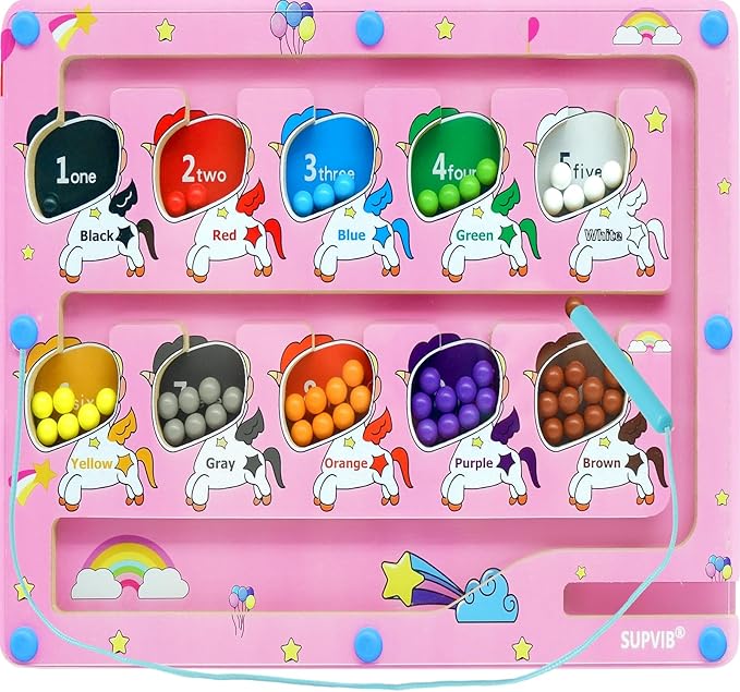 - MAGNE COLOR AND COUNTING MAZE EDUCATIONAL TOY: Features animals with numbers 1-10 and matching colors. Children use the magnetic pen to move beads to the correct color boxes, enhancing color and number recognition. Suitable for kids aged 3 and up, promoting hand-eye coordination and fine motor skills.