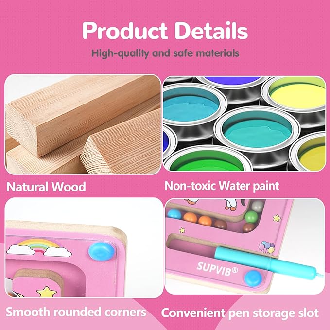 - SAFE WOODEN MAGNETIC MAZE: Made from high-quality natural wood with non-toxic paint. Smooth and rounded edges ensure safety for children’s hands.