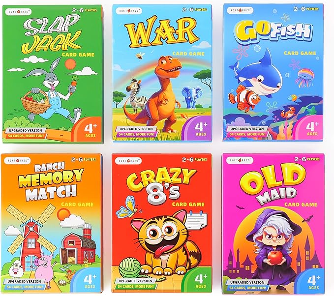 Upgraded Kids Card Games Pack, 6 Decks, Go Fish, Old Maid, Crazy Eights, Memory Match, Slap Jack, War, Playing Cards, Easter Basket Stuffers, Stocking Stuffers