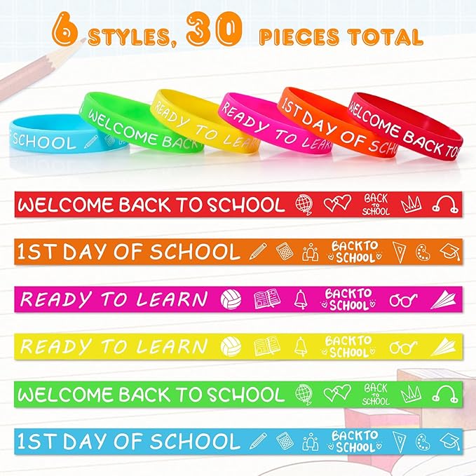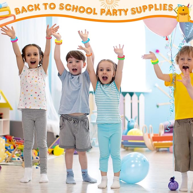 - Back to School Party Favors: 30 PCS back to school bracelets bulk can be used as decorations for a back to school party or as back to school teacher gifts, and the cheerful atmosphere will help students get into school quickly. Back to school supplies, back to school decorations, back to school stuff, back to school supplies bulk, back to school party decorations, back to school supplies kindergarten, back to school activities, back to school bulk, first day of school decorations.