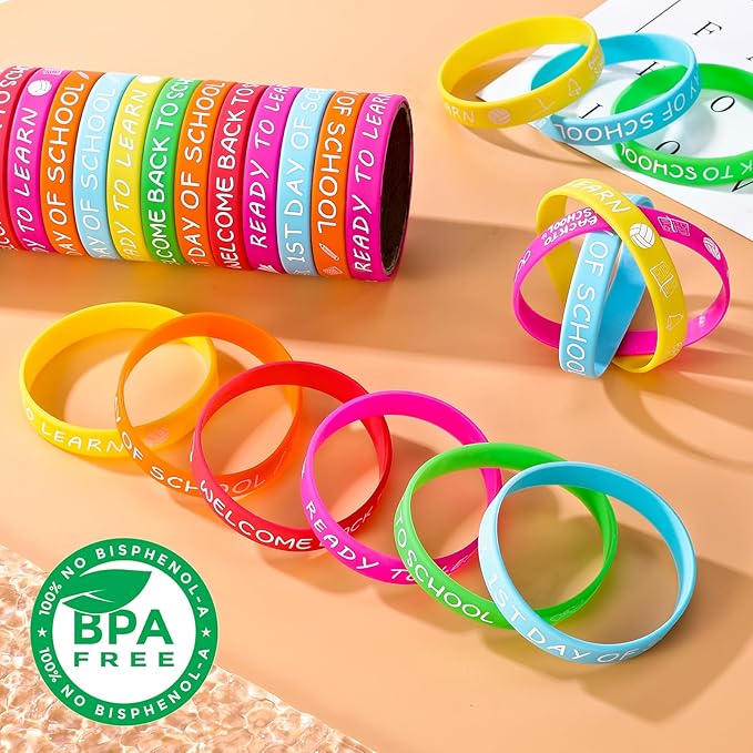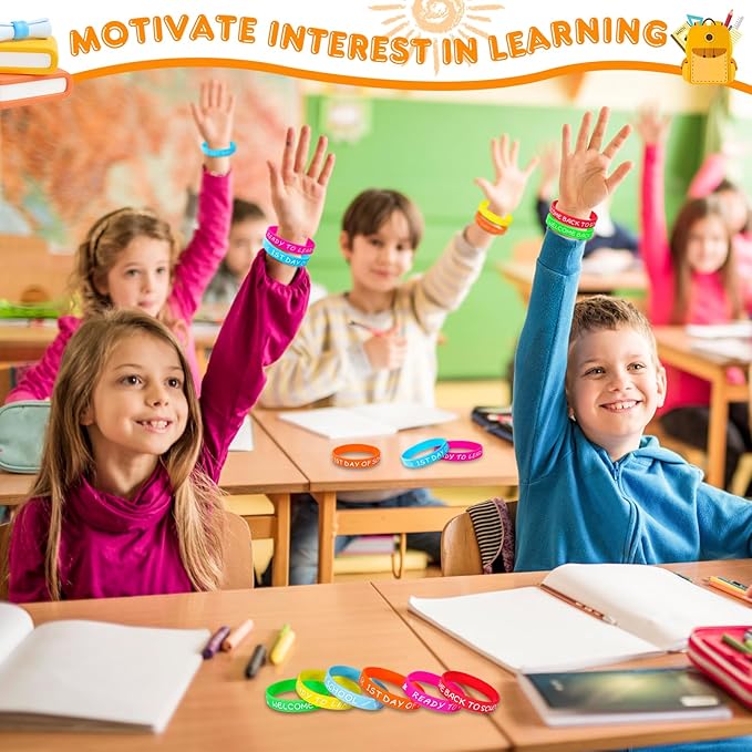 - Perfect Back to School Gift: These colorful welcome back to school bracelets are great for parents and teachers to give the kids as a school motivational gift. Each back to school bracelet is printed with some cheerful words that expresses the students' enthusiasm for going back to school! Back to school teacher gifts, back to school gift bags, back to school gift basket, back to school gift, first day of school teacher gifts, first day of school gifts, first day of school gifts for boys.
