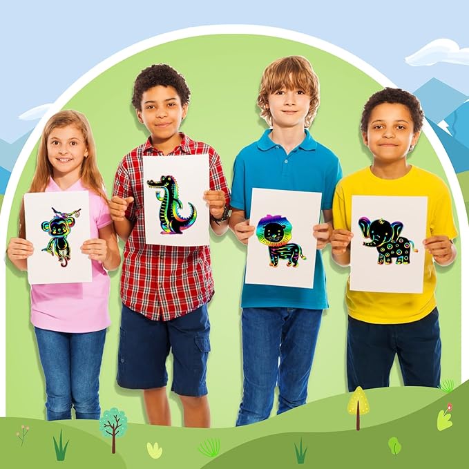 - Suitable for Every Occasion: the scratch cards are designed in a variety of shapes, such as elephant and tiger, interesting and suitable for adults, teenagers, and children to play with during safari animal parties; Let them handcraft some lovely ornaments themselves to create a joyful atmosphere; The safari animal party crafts add a fun to any gathering