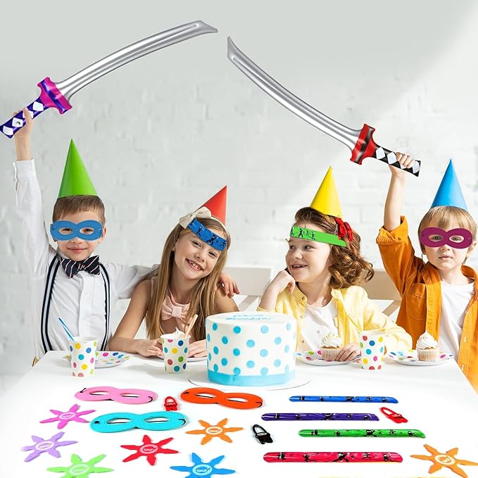 ZOIIWA 72Pcs Karate Party Favors Include Inflatable Sword Headbands Colorful Karate Party Decorations Karate Slap Bracelets Eye Mask Costume Accessories Gift Set for Kids Boys Girls Birthday Supplies