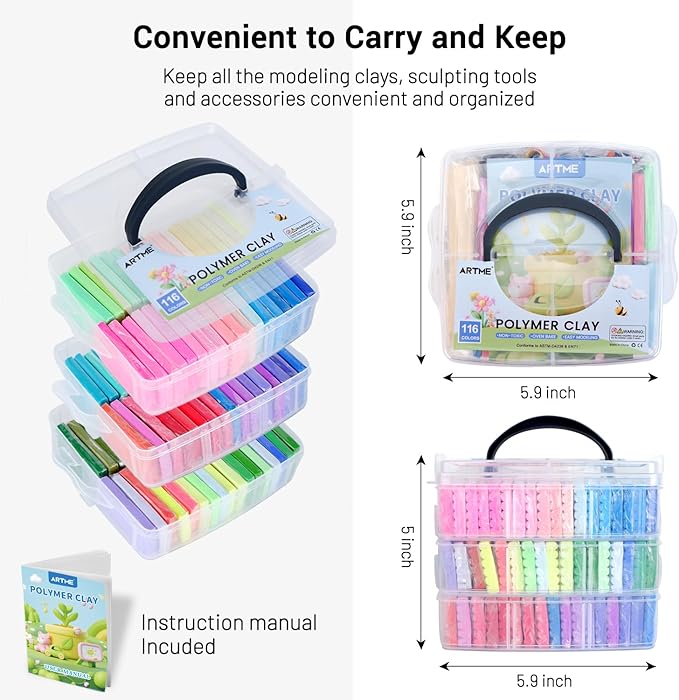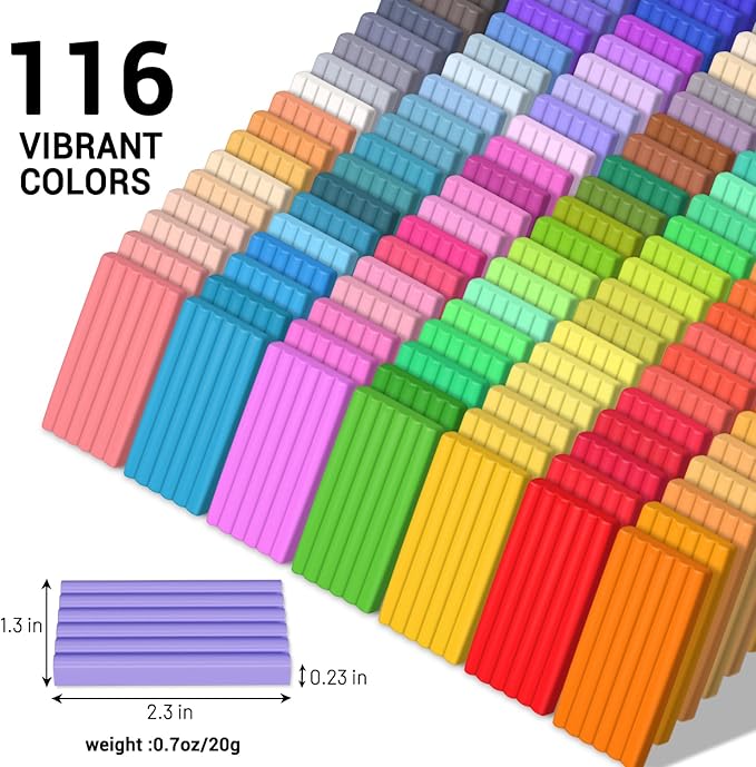 - RICH COLOR CHOICES: ARTME polymer clay set has 116 vibrant colors, that retain their vibrancy after baking. Each clay is 0.7 oz, 116 colors enough for your any DIY project, satisfying matching, non-sticky, non-fading, easy modeling. Ideal gifts for kids, beginners, and artists to make small ornaments, model animals, characters, etc.