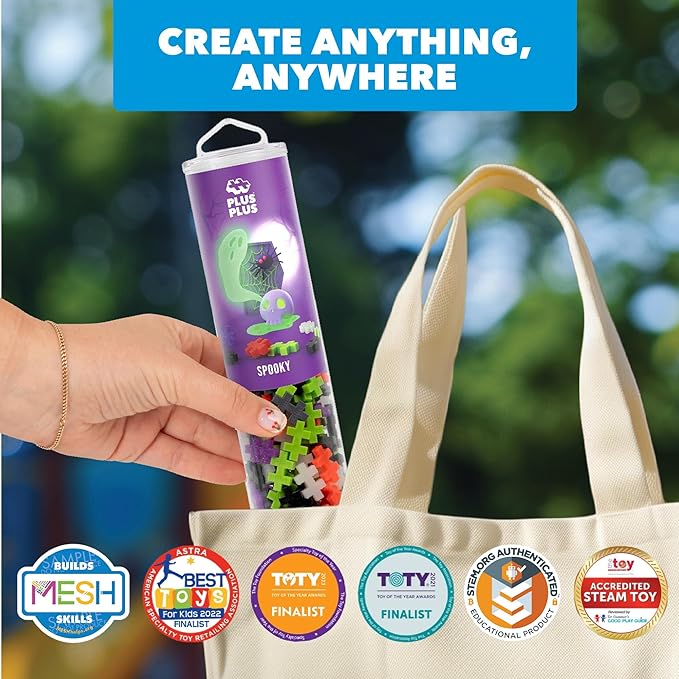 PLUS PLUS 240 Piece Interlocking Building Blocks for Kids, Open Ended Connecting Toys, STEM Bin Classroom Mini Manipulatives - Spooky Mix Play Tube