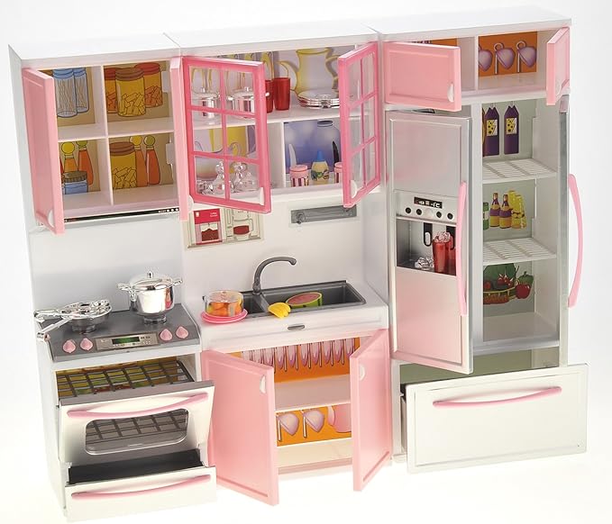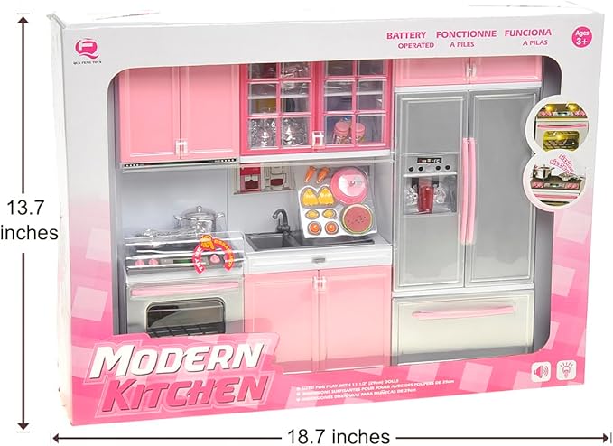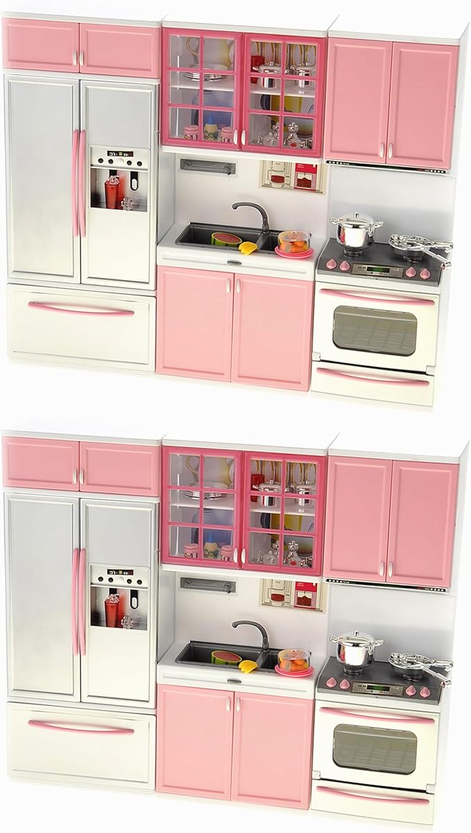 PowerTRC 2 Sets of Modern Toy Kitchen - Battery Operated - Kitchen Playset - Perfect for Dolls