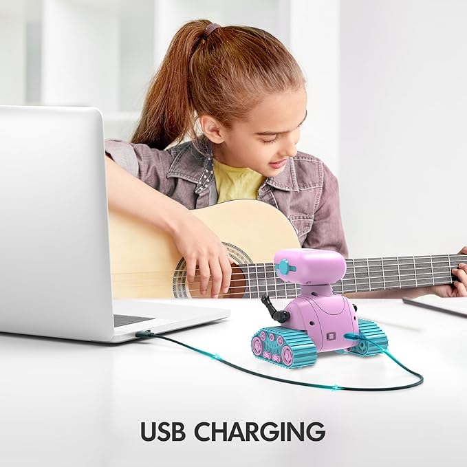 - Fantastic Appearance: This cute and funny robot is design in 2 part. The upper part is a cute robot with a pair of LED eyes and the gesture can be adjusted.The bottom part is a pair of tank tracks. Besides, we adopt a exquisite packaging for this robot. It will be a great birthday or Christmas gift for your kids. Robot Size:4.9*3.4*4.7 inches.