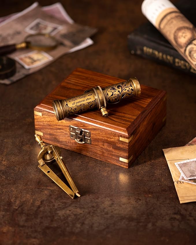 - ✔ This is Fully Handcrafted Vintage Navigational kaleidoscope. Antique Brass kaleidoscope is made of Premium Grade Brass,comes beautiful handmade victorian style wooden box.