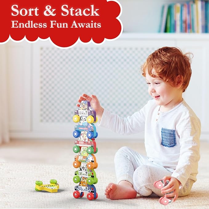 • Montessori Toys for 1 Year Old: Designed with Montessori principles, these wooden cars and flashcards nurture independence and sensory exploration, making them perfect learning toddler toys for early developmental milestones.