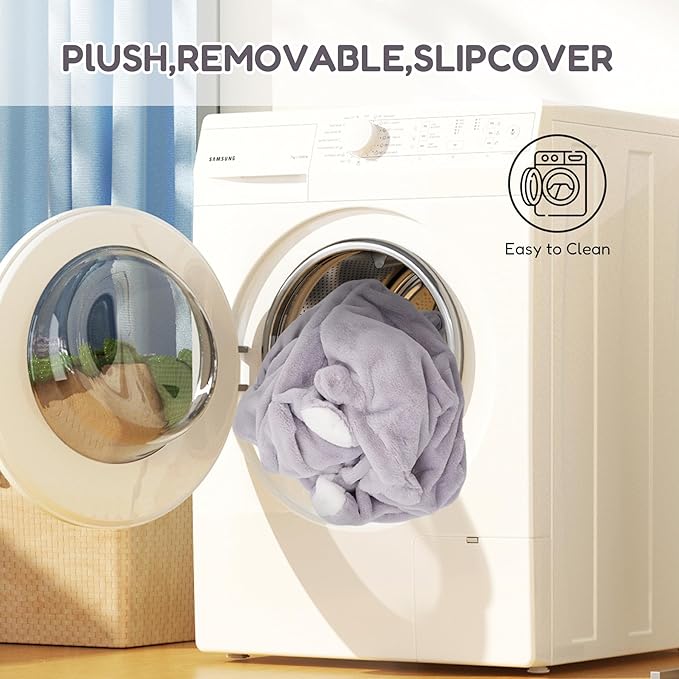 - 【Cute and Cozy】 The kid's sofa is made of durable, cozy, soft and skin-friendly Faux Rabbit Fur, and the interior is filled with 3-inch thick high-density elastic sponge, which can support your child's body and also make it not easy to deform and collapse. The sweet face and fluffy ears are cute as can be.