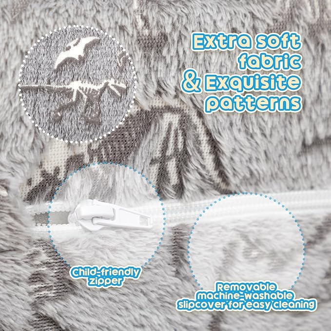 ALIMORDEN 2-in-1 Flip Out Cuddly Sherpa Toddler Couch, Convertible Sofa to Lounger, Glow in The Dark,Dinosaurs