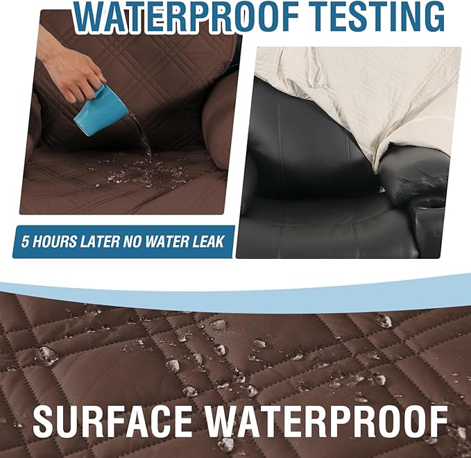 H.VERSAILTEX 100% Waterproof Recliner Chair Cover Non-Slip Reclining Cover for Electric Power Lift Recliner Chair Washable Reclining Chair/Furniture Protector for Kids, Pets,Brown/Beige