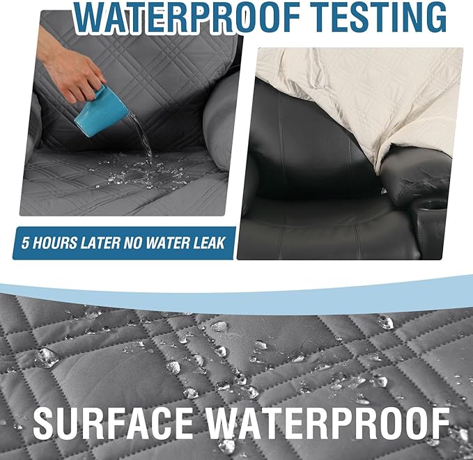 H.VERSAILTEX 100% Waterproof Recliner Chair Cover Nonslip Recliner Cover Stay in Place Electric Power Lift Recliner Slipcovers Fitted Standard Large Power Lift Recliner with Side Pocket,Grey/Beige