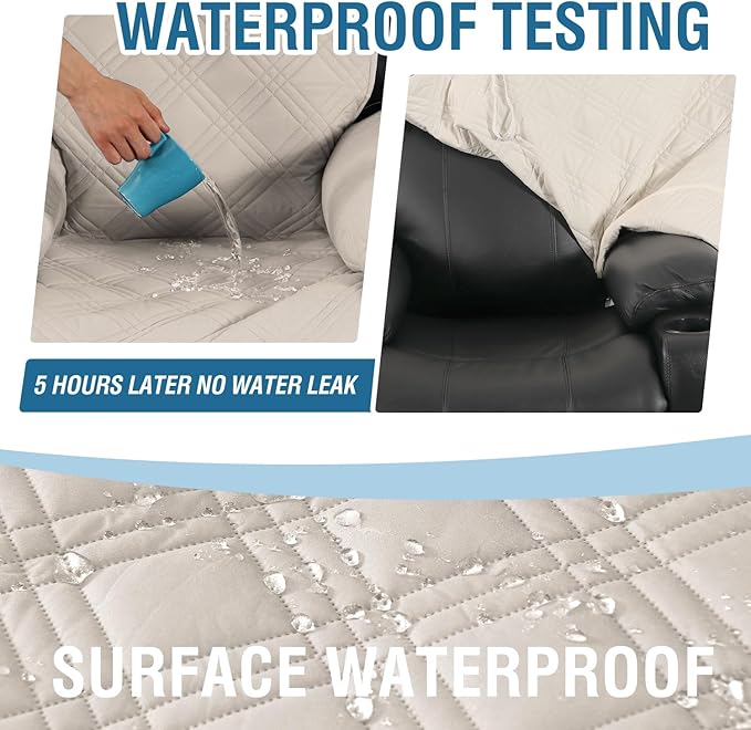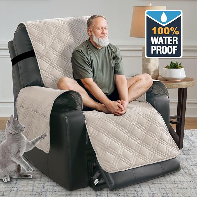 H.VERSAILTEX 100% Waterproof Recliner Chair Cover Reclining Couch Covers for Electric Power Lift Recliner Furniture Protector with Elastic Straps for Kids,French Oak/Beige