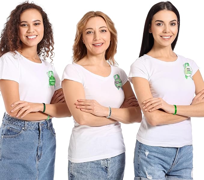 - Mental Health Awareness Accessories: the Mental Health party favors set includes 30 Mental Health Awareness round buttons pins in 10 different patterns and 30 Green Ribbon silicone bracelets in 6 patterns, and the sufficient quantity and styles are enough to meet your different needs, and you can choose your favorite color to wear or replace one by one, simple yet cute