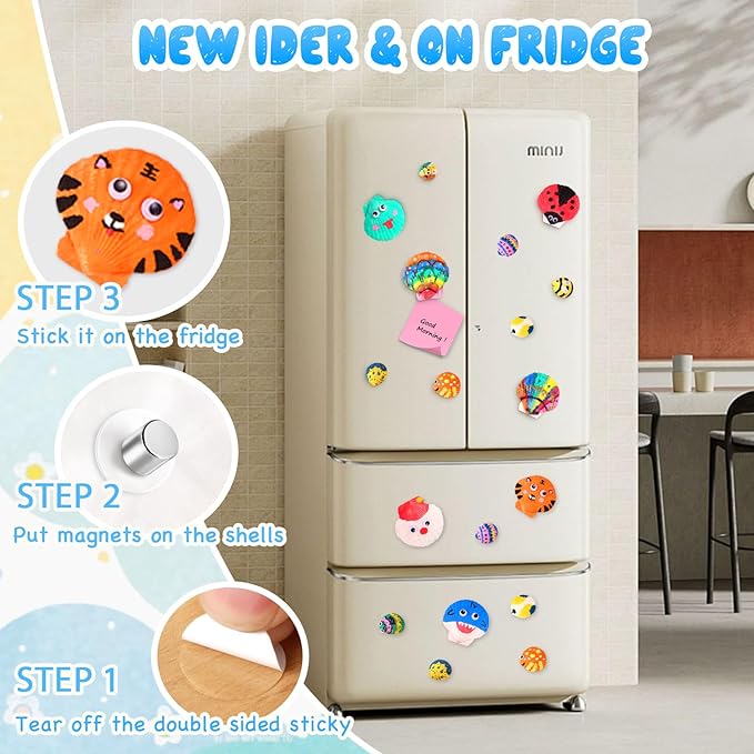 - Add New Creative Design - Enhance your shell lot of fun with clever gadgets! Stick small magnets and sticky tack on the shell, it can be used as refrigerator stickers, they also be pasted on walls, computers, and draw boards to display, to increase the fun. Moreover, the smooth shaft securely attaches to the shell, enabling it to rotate, creating a unique rotating toy, very fun.