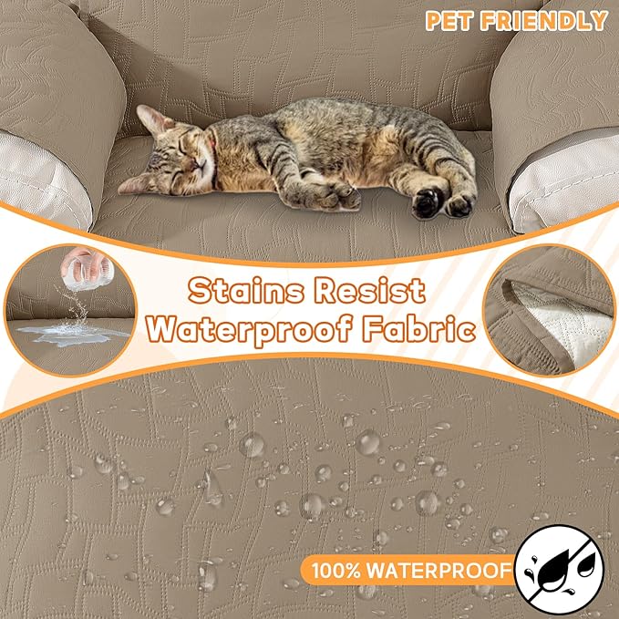 - Premium Waterproof Protection: The top of the recliner slipcover is coated with a waterproof layer, complemented by a TPU waterproof layer in the middle, offering a dual defense system to ensure 100% waterproof and leak-proof functionality. This innovative waterproof feature serves as a shield to safeguard your recliner from any spills, liquid mishaps, and daily wear.