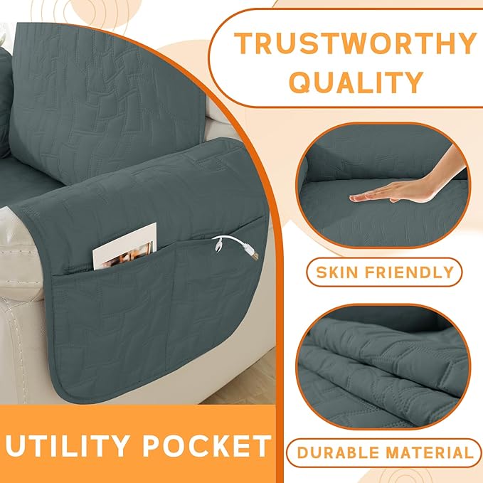 - Premium Waterproof Protection: The top of the recliner slipcover is coated with a waterproof layer, complemented by a TPU waterproof layer in the middle, offering a dual defense system to ensure 100% waterproof and leak-proof functionality. This innovative waterproof feature serves as a shield to safeguard your recliner from any spills, liquid mishaps, and daily wear.