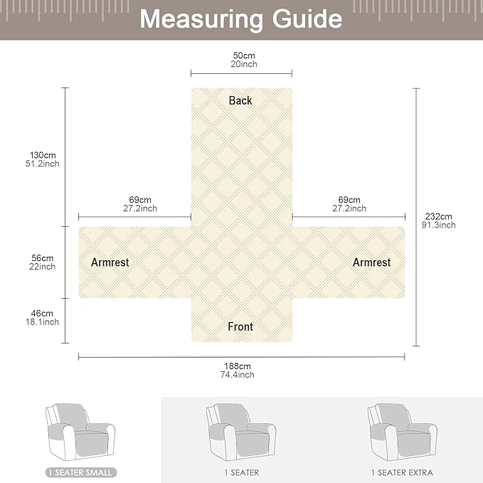 - 【DIMENSIONS GUIDE】 Small pet recliner cover fit a chair with a seat width of 20 in, see measurement guide in photos. NOTE: Please confirm the size before purchasing.(Due to some lighting reasons, the color of each display will be different, so please refer to the actual color.)