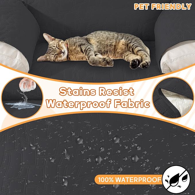 - Premium Waterproof Protection: The top of the recliner slipcover is coated with a waterproof layer, complemented by a TPU waterproof layer in the middle, offering a dual defense system to ensure 100% waterproof and leak-proof functionality. This innovative waterproof feature serves as a shield to safeguard your recliner from any spills, liquid mishaps, and daily wear.