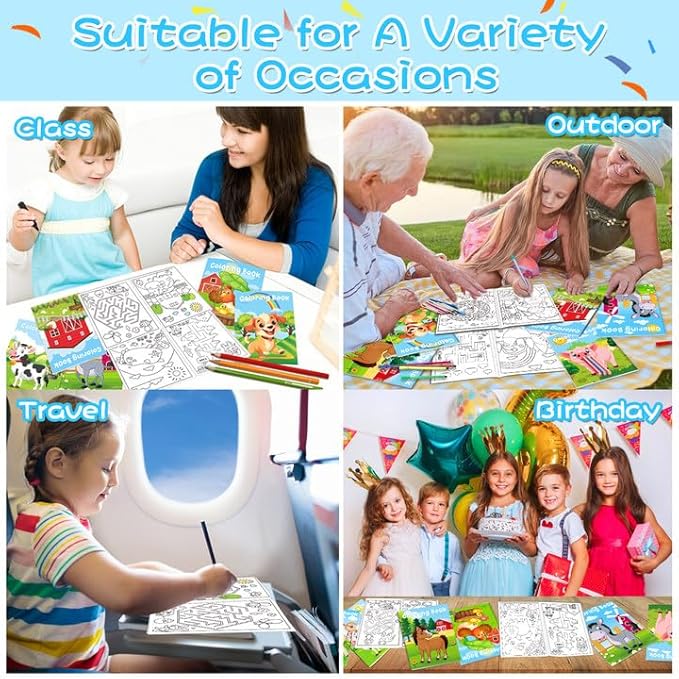 - Mini Coloring Books Party Favors: These small coloring books for kids bulk make any party a hit, great for kids' goodies bags stuffer fillers, birthday party gifts, first day of School classroom activities, children's birthday gifts, farm theme party favors, barn party supplies, toddler gifts, classroom DIY painting activities, etc. These party favor coloring books are also suitable for any age that loves to color