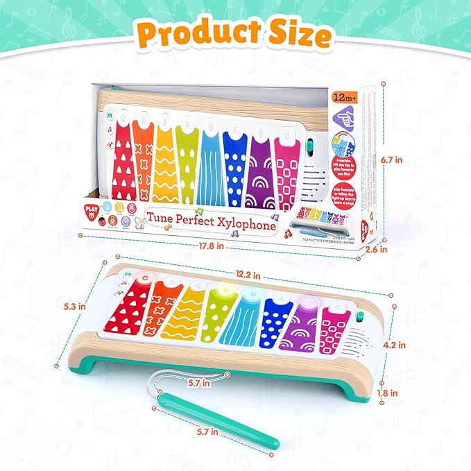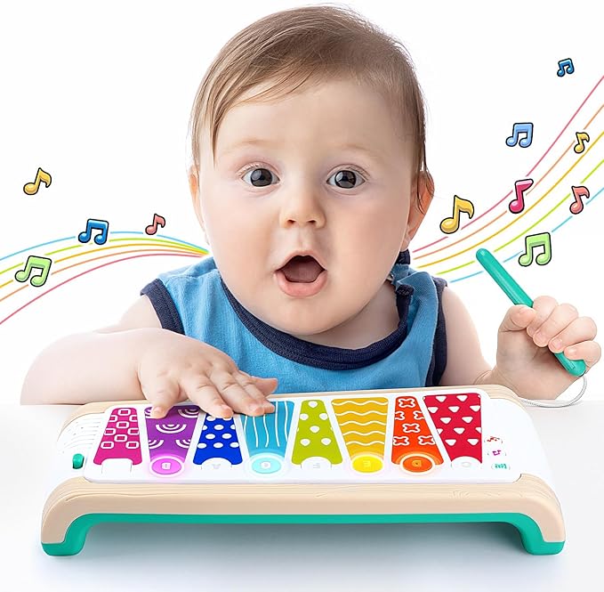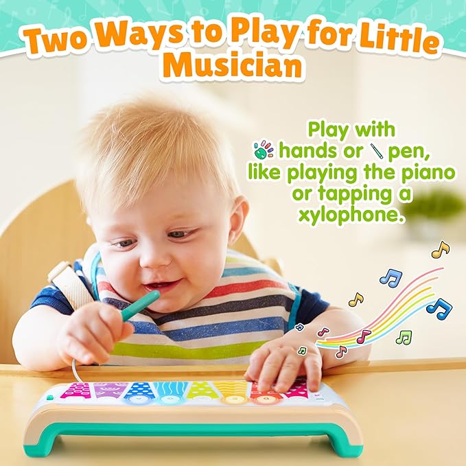 - Multiple Advantages - Firstly, 2 usage baby musical toy: touch and pen play. The touch is like playing the piano, just put hand on it to make a sound, it doesn't take any effort so baby won't lose interest. The pen stroke is like tapping the xylophone; Secondly, the musical toys for 1 year old has full-tone letters, "C.D.E.F.G.A.B", which can learn more baby music basics; Others, the volume can be controlled; Finally, it comes with batteries, no need to buy extra!