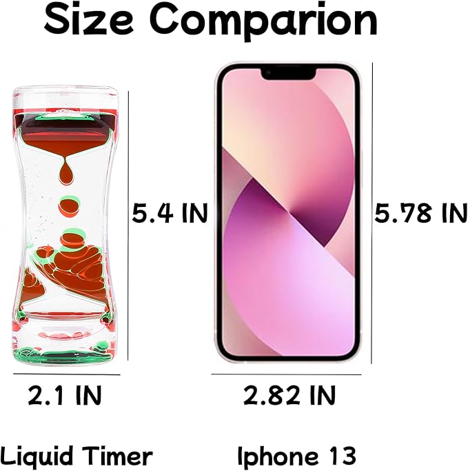 - Fun and Relaxing: The hourglass timer helps children and adults focus, relieve anxiety and fight boredom by allowing gravity to guide the colored oil drops from top to bottom at a slow, steady pace. The liquid timer is especially great for people with special needs or those who work long hours in front of a computer, helping you relax while providing hours of entertainment