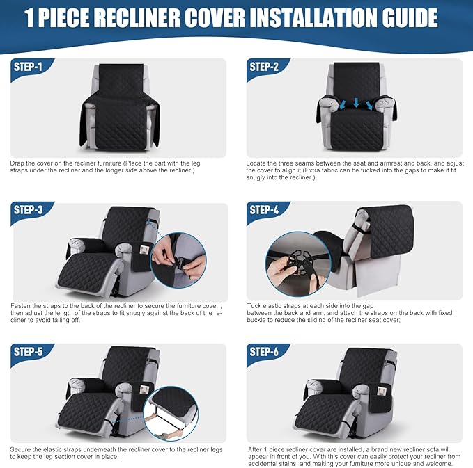 - DOUBLE WATERPROOF LAYER - 100% PROTECTION: Our recliner chair cover adopts new double-layer waterproof treatment technology, providing 100% waterproof and leak-proof function; Protect your furniture from spills, daily wear and tear or pet hair, ensuring your furniture always stays clean and dry