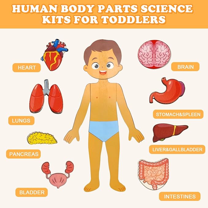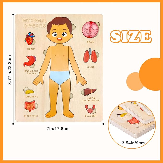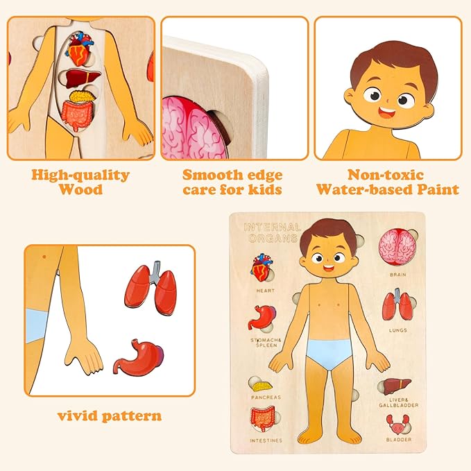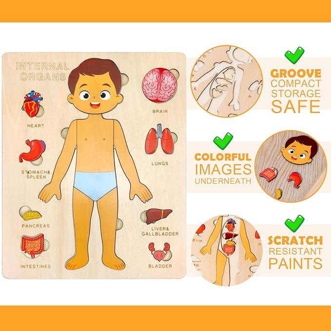 - 【Perfect Gift for Boys and Girls】Ideal for birthdays, holidays, or any occasion to inspire curiosity and educational play. Engaging wooden puzzle that helps your grandkids learn about their body and internal organs.