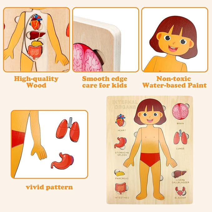 - 【Perfect Gift for Boys and Girls】Ideal for birthdays, holidays, or any occasion to inspire curiosity and educational play. Engaging wooden puzzle that helps your grandkids learn about their body and internal organs.