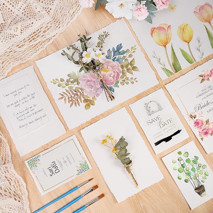 - 【Craft Decoration】Cotton deckled edge paper can also be given as a gift to people who like to draw, such as children, students, artists, etc., which can stimulate their creativity and imagination and show their painting talent. You can also make collages, watercolors and retro paintings style invitation.