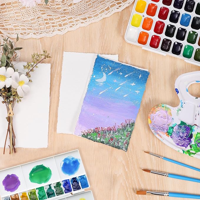 - 【What You Will Receive】You will receive 50 sheets of handmade textured paper measuring 4 x 6 inches, paper weight 140lb/300gsm, ivory white to suit your various painting needs and to share with your children, friends and family.