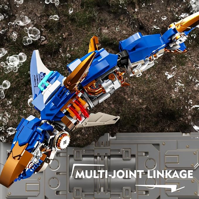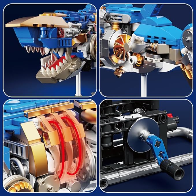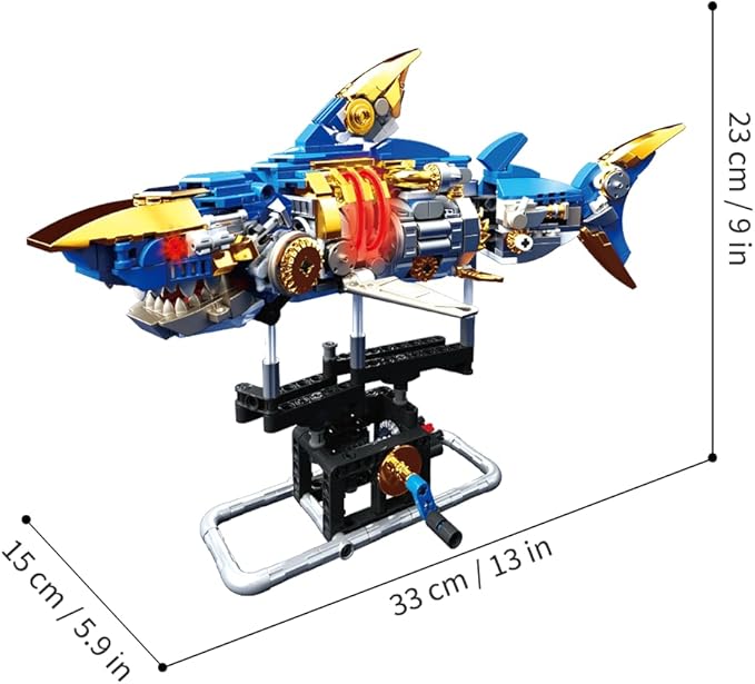 - Shark Sea Creatures Block Set (685 pieces): This marine animal block toy comes with 685 pieces, including a display stand and fluorescent lights. The clever mechanical design brings a sense of technology to the shark model!