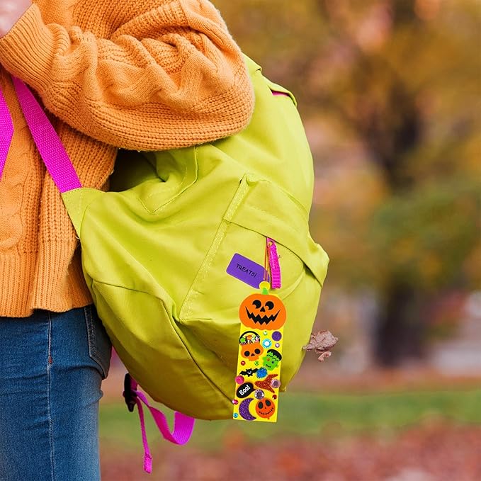 - 36 Halloween Craft Kits: Our pack provides materials for 36 easy-to-create, peel-and-stick Halloween bookmarks, perfect for organization, gifting, and group activities. This kit includes 36 halloween-colored foam bookmarks, 180 halloween foam stickers across Halloween characters, treats, and creatures, 48 glitter foam Halloween stickers . They also include extra embellishments like 36 sheets gem stickers, 100 pom-poms, 36 string cords, 36 clear bags, 36 twist ties, 36 gift stickers and 2 guides.