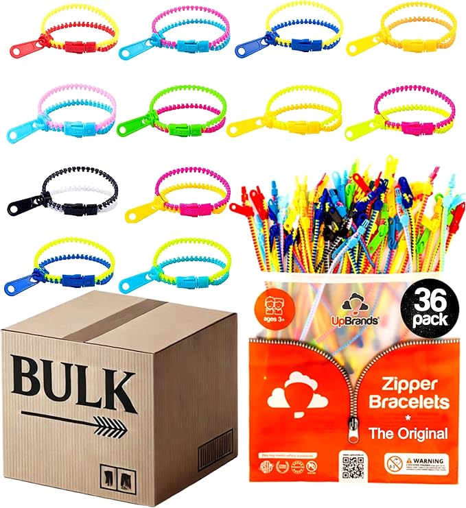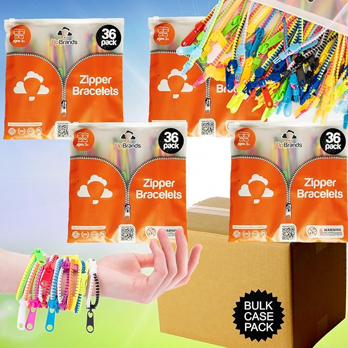 UpBrands 80 x 36 Packs Bulk Quiet Fidget Toys – Friendship Zipper Bracelets, 7.5” Sensory Kit for Businesses, Schools, Churches, Vending Machine Toys, Nonprofits, and Community Events