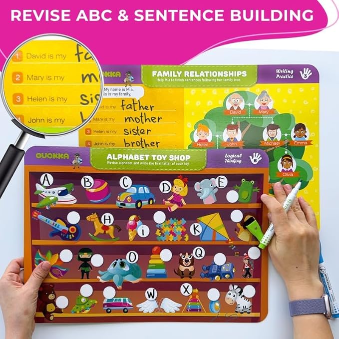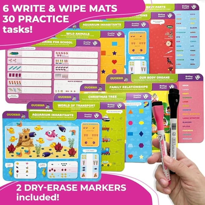 - PRESCHOOL LEARNING ACTIVITIES: Our dry erase games are essentials for kindergarten classroom must haves and homeschool supplies; We included multiple educational games with numbers, letters, colors for easy learning for toddlers 3-4