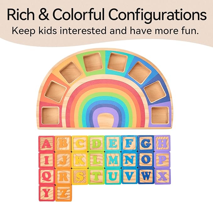 - EASY GRAB: The blocks with smooth edges are suitable for small hands to grasp easily. Children will enjoy hands-on, screen-free fun with these educational wooden blocks.