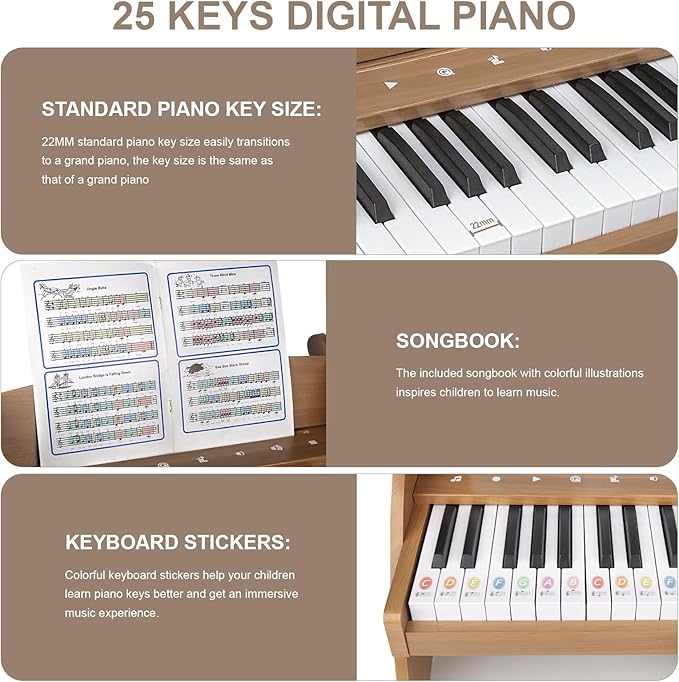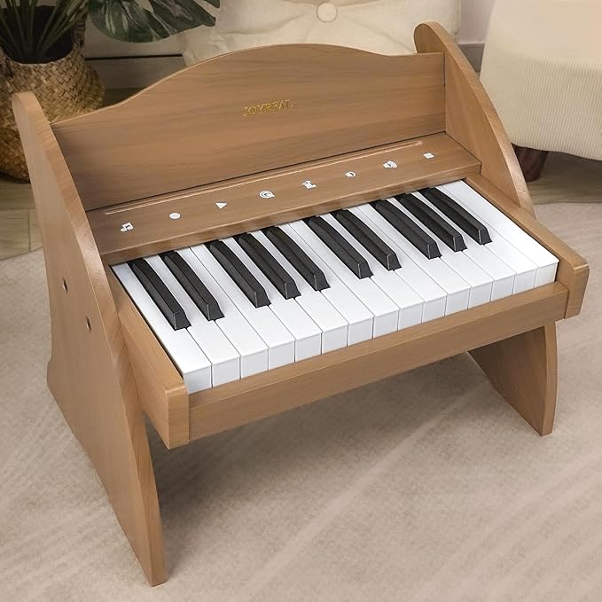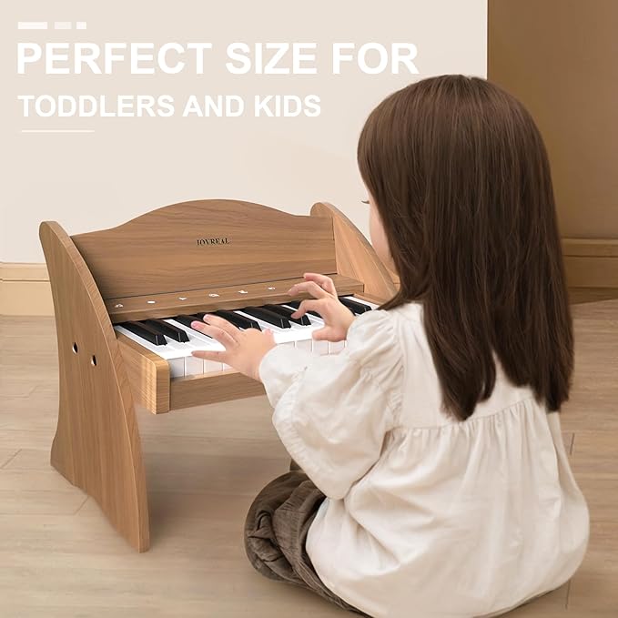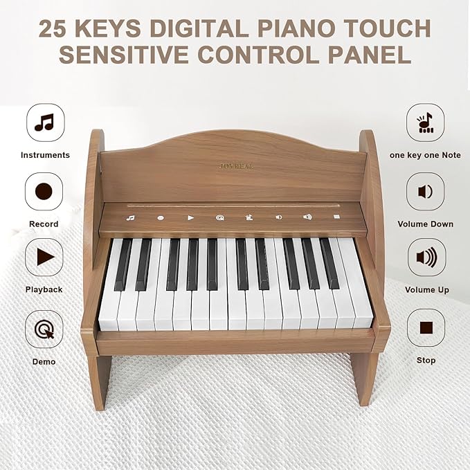 Joyreal Kids Piano Keyboard - 25 Keys Digital Piano Toys with Keyboard Sticker and Touch Sensitive Control Panel,Music Educational Instrument Toy,Wooden Mini Piano Gifts for Girls Boys Ages 3+