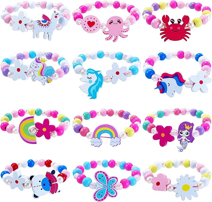 - Magical Animal Bracelets Set: Discover 12 charming pastel beaded bracelets featuring beloved unicorns, mermaids, butterflies, flowers, and adorable charms. Good for girls aged 3-12, they make delightful birthday present or party favors.