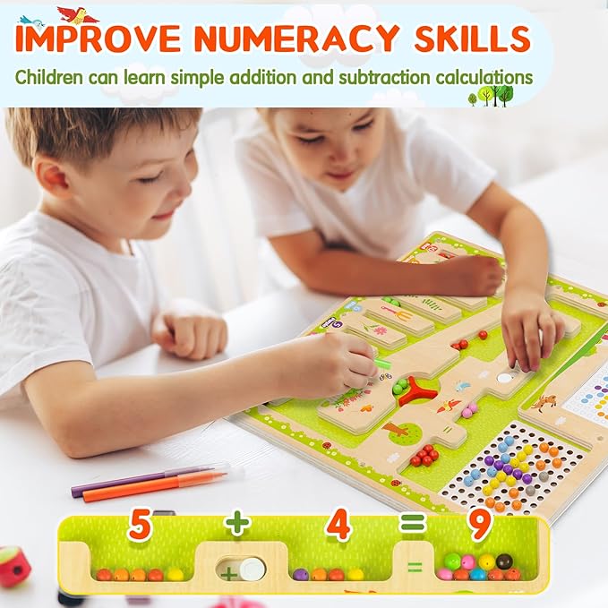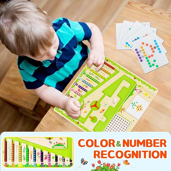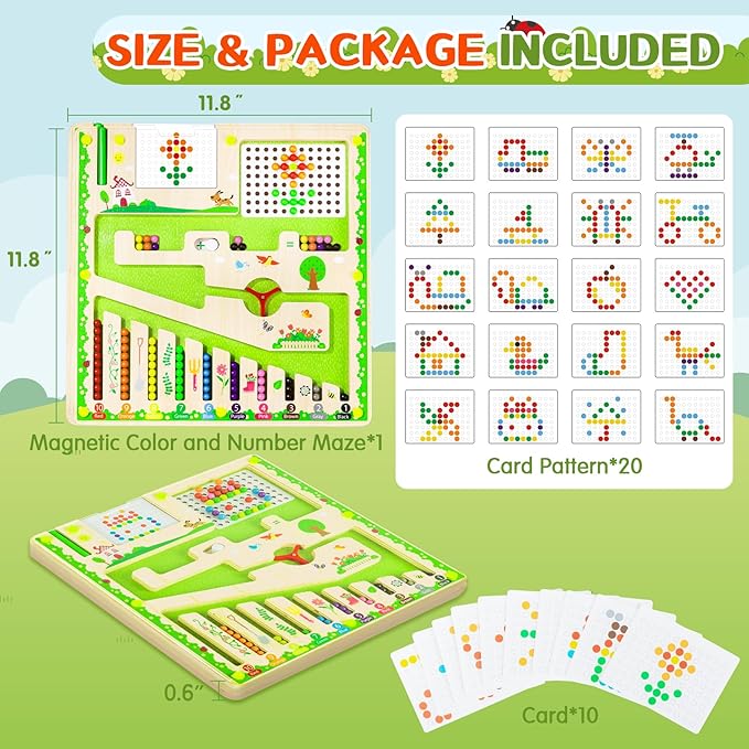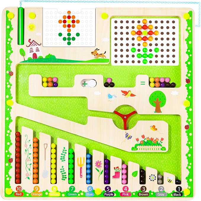 - FUN PLAY EXPERIENCE: magnetic color and number maze featuring 7 vibrant colors. This magnetic maze allows children to drag beads through the maze, create flower shapes, or match beads to corresponding color areas. The interactive play encourages creativity and color recognition in an engaging way.