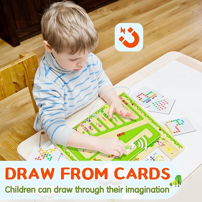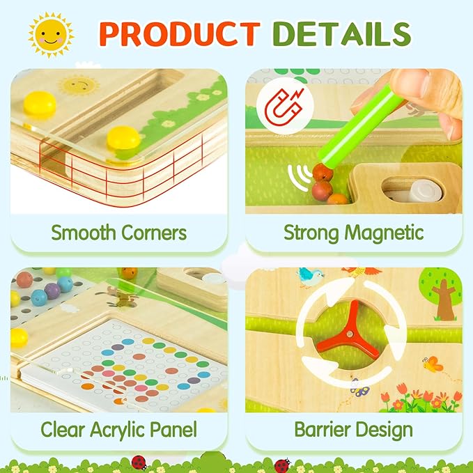 - DURABLE & SAFE MATERIALS: The montessori magnetic maze is crafted from high-quality wood and featuring a clear acrylic panel. The acrylic panel prevents direct contact with the magnetic beads, minimizing the risk of swallowing and ensuring a secure playtime experience.