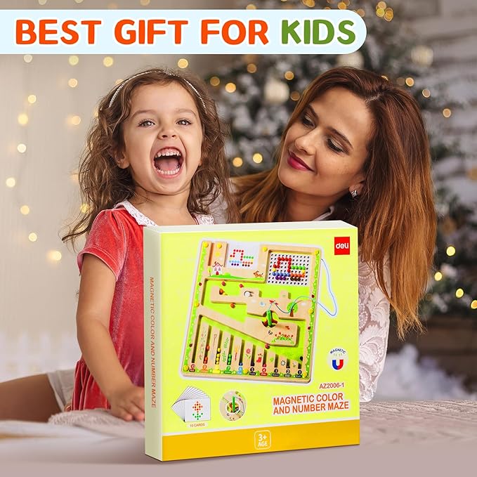 deli Magnetic Color and Number Maze, Wooden Montessori Toys for Tolddlers, Learning Educational Fine Motor Skills Toys for Kids 3 4 5 Year Old Gifts