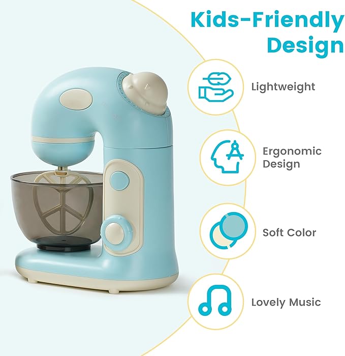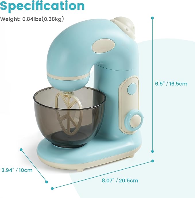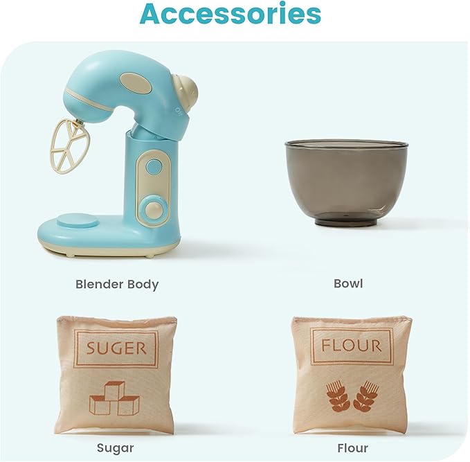 - [Realistic Features]: Designed to provide a true-to-life experience, our mixer toy includes realistic elements such as a removable mixing bowl and rotating paddles. Your little ones will feel like real chefs as they mix and blend their favorite pretend recipes.